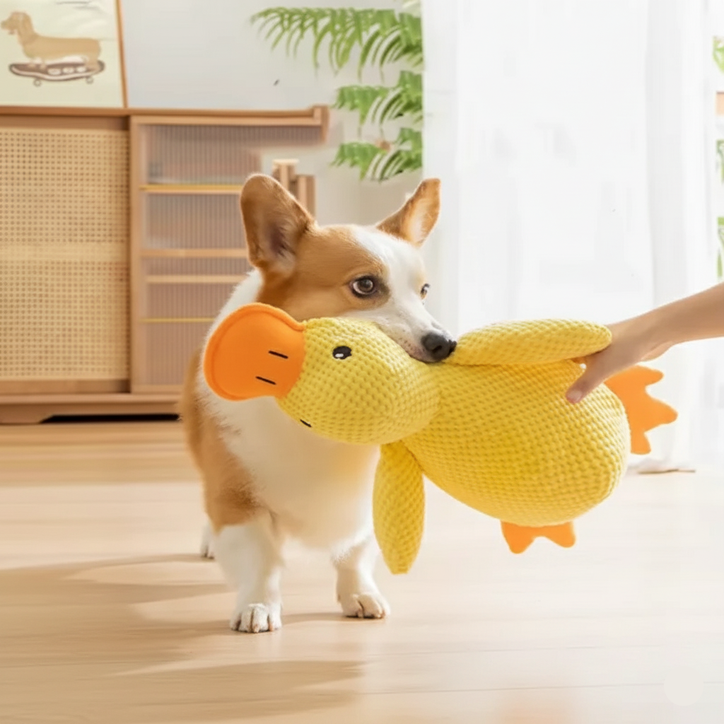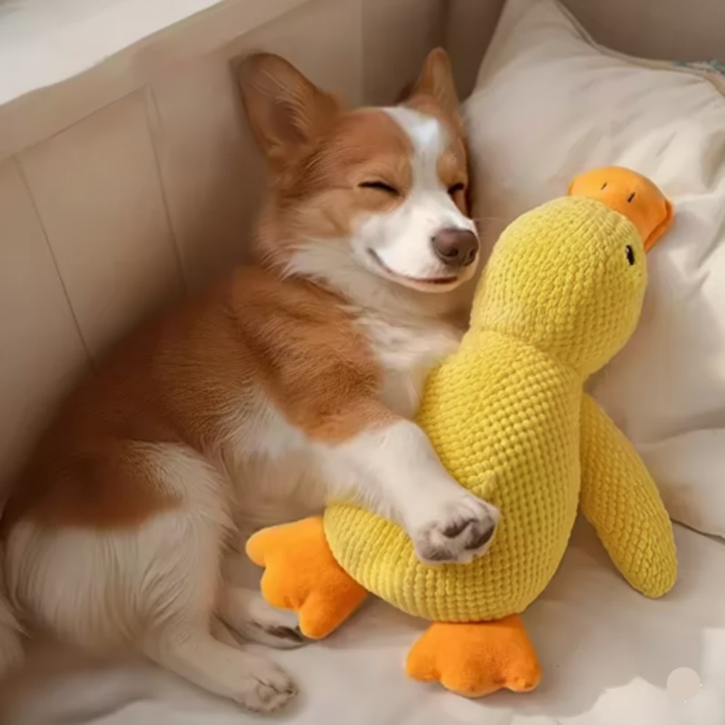 Les chiens sensibles trouvent dans le Canard Jaune™ une présence rassurante :